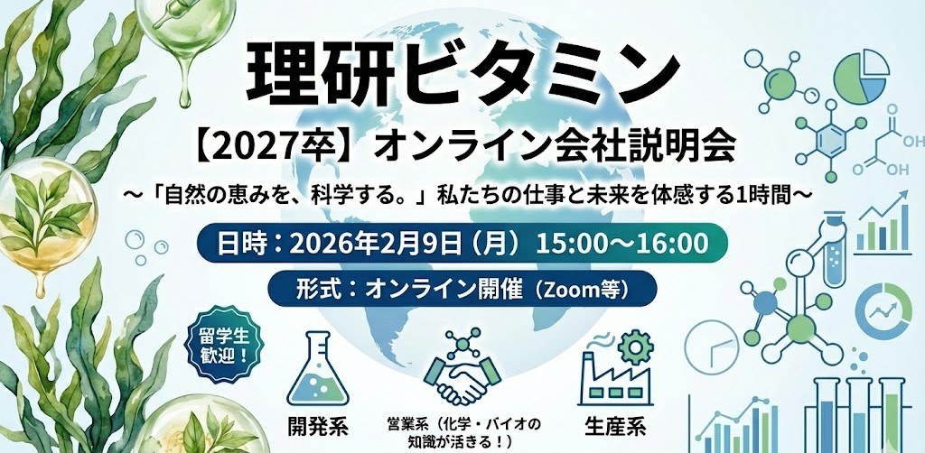 【 26年秋・27年春 グローバル研究職 3月11日(水曜)14時〜16時 アース製薬/Earth Corporation】リュウカツ限定・理系外国人留学生オンライン説明会/アジア市場・中東や中南米市場の製品開発 マーケティング・企画・開発業務