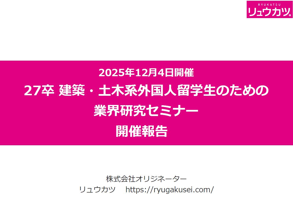 - 27卒対象「 建築・土木系留学生のための業界研究セミナー」を開催しました