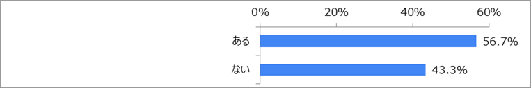「ある」が56.7%、「ない」が43.3%で、就職活動で生成AIを利用したことがある留学生の方が多い結果となりました。