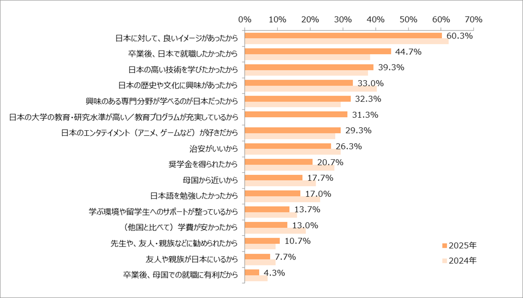 ※「日本の大学の教育・研究水準が高い/教育プログラムが充実しているから」は2025年から選択肢に追加